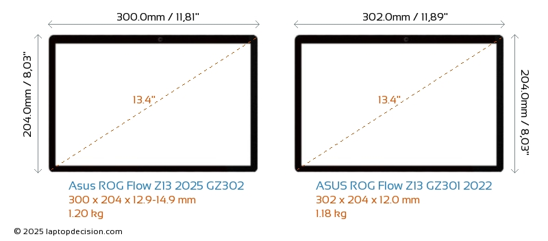 HDMI ROG Flow Z13 2025 GZ302 features an HDMI port (1x HDMI 2.1) for connecting to external monitors. ROG Flow Z13 GZ301 2022 does not have an HDMI port.