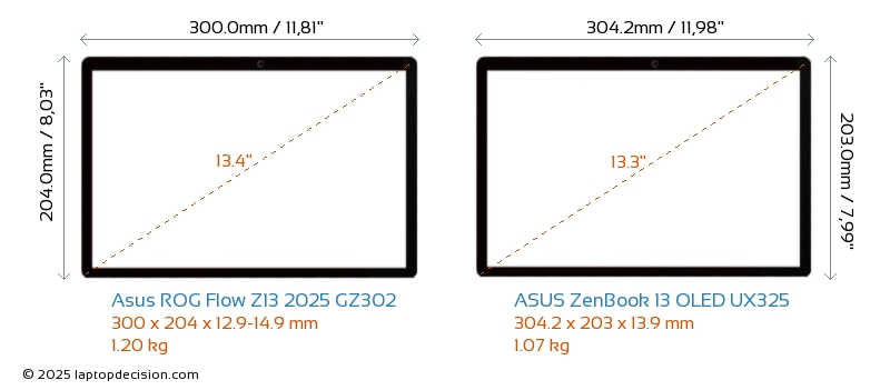 ThunderboltZenBook 13 OLED UX325 is equipped with Thunderbolt 4 port. ROG Flow Z13 2025 GZ302 does not have Thunderbolt port.