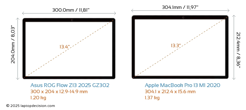 ThunderboltMacBook Pro 13 M1 2020 is equipped with Thunderbolt 3 port. ROG Flow Z13 2025 GZ302 does not have Thunderbolt port.