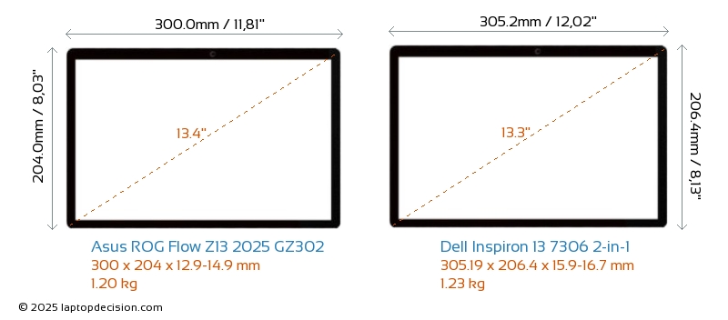 USBBoth ROG Flow Z13 2025 GZ302 and Inspiron 13 7306 2-in-1 feature 1x USB 3.2 USB-A ports.Both ROG Flow Z13 2025 GZ302 and Inspiron 13 7306 2-in-1 have USB Type-C ports. ROG Flow Z13 2025 GZ302 has 2x USB 4.0 USB Type-C ports, while Inspiron 13 7306 2-in-1 has 1x USB 3.2 USB Type-C ports.