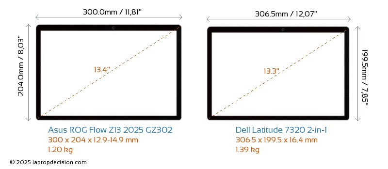 ThunderboltLatitude 7320 2-in-1 is equipped with Thunderbolt 4 port. ROG Flow Z13 2025 GZ302 does not have Thunderbolt port.