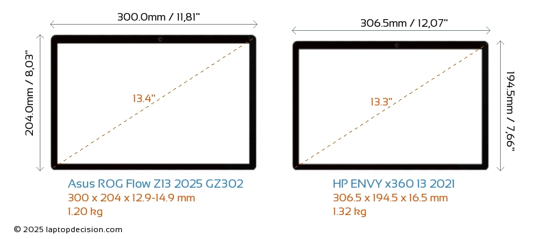 Audio JackBoth ROG Flow Z13 2025 GZ302 and ENVY x360 13 2021 are equipped with a 3.5mm Audio Jack, providing seamless connection to headphones and speakers.