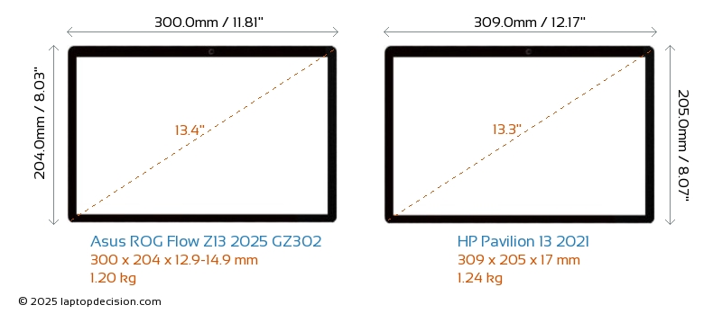 Audio JackBoth ROG Flow Z13 2025 GZ302 and Pavilion 13 2021 are equipped with a 3.5mm Audio Jack, providing seamless connection to headphones and speakers.