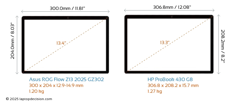 USBBoth ROG Flow Z13 2025 GZ302 and ProBook 430 G8 have USB-A ports. ROG Flow Z13 2025 GZ302 has 1x USB 3.2 USB-A ports, while ProBook 430 G8 has 2x USB 3.2 USB-A ports.Both ROG Flow Z13 2025 GZ302 and ProBook 430 G8 have USB Type-C ports. ROG Flow Z13 2025 GZ302 has 2x USB 4.0 USB Type-C ports, while ProBook 430 G8 has 1x USB 3.2 USB Type-C ports.