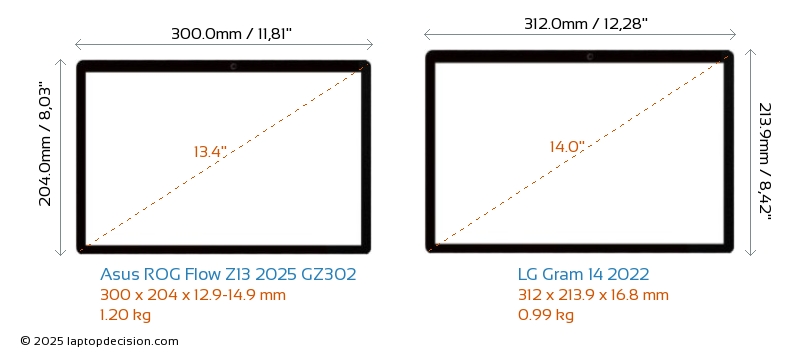 ThunderboltGram 14 2022 is equipped with Thunderbolt 4 port. ROG Flow Z13 2025 GZ302 does not have Thunderbolt port.
