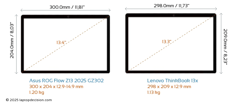 ThunderboltThinkBook 13x is equipped with Thunderbolt 4 port. ROG Flow Z13 2025 GZ302 does not have Thunderbolt port.