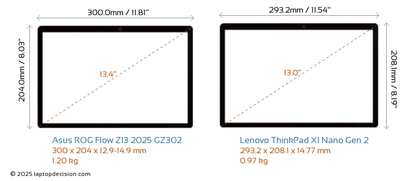 USB ROG Flow Z13 2025 GZ302 is equipped with 1x USB 3.2 USB-A ports. ThinkPad X1 Nano Gen 2 does not have USB-A ports.Both ROG Flow Z13 2025 GZ302 and ThinkPad X1 Nano Gen 2 feature 2x USB 4.0 USB Type-C ports.