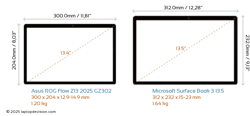 ThunderboltNeither ROG Flow Z13 2025 GZ302 nor Surface Book 3 13.5 has Thunderbolt port.