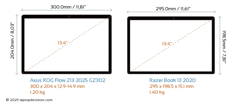ThunderboltBook 13 2020 is equipped with Thunderbolt 4 port. ROG Flow Z13 2025 GZ302 does not have Thunderbolt port.