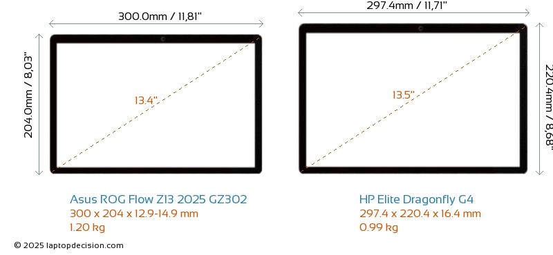 USB ROG Flow Z13 2025 GZ302 is equipped with 1x USB 3.2 USB-A ports. Elite Dragonfly G4 does not have USB-A ports.Both ROG Flow Z13 2025 GZ302 and Elite Dragonfly G4 feature 2x USB 4.0 USB Type-C ports.