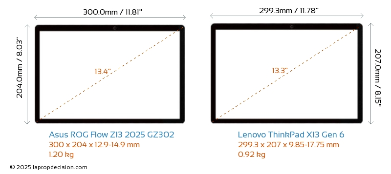 Thunderbolt ThinkPad X13 Gen 6 is equipped with Thunderbolt 4 port. ROG Flow Z13 2025 GZ302 does not have Thunderbolt port.