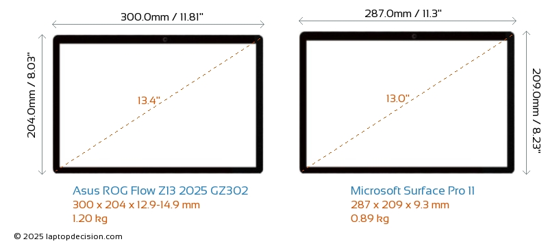 ThunderboltNeither ROG Flow Z13 2025 GZ302 nor Surface Pro 11 has Thunderbolt port.