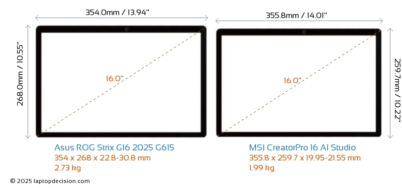 HDMIBoth ROG Strix G16 2025 G615 and CreatorPro 16 AI Studio feature an HDMI port (1x HDMI 2.1) for connecting to external monitors.
