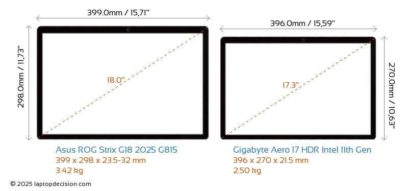 SD Card ReaderAero 17 HDR Intel 11th Gen is equipped with an SD Card Reader for easy access to memory cards. ROG Strix G18 2025 G815 does not have an SD Card Reader.