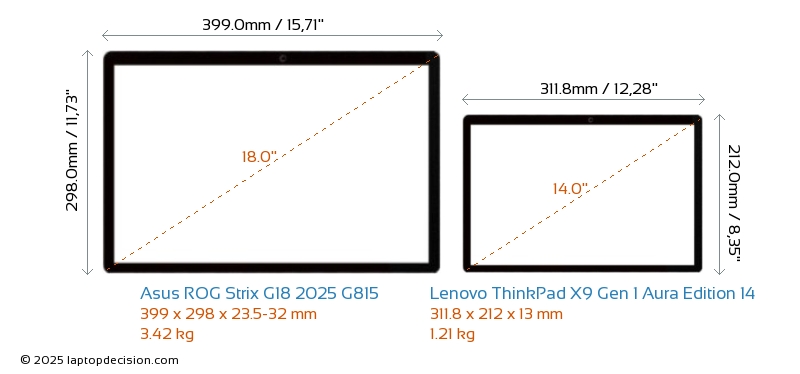 Audio JackBoth ROG Strix G18 2025 G815 and ThinkPad X9 Gen 1 Aura Edition 14 are equipped with a 3.5mm Audio Jack, providing seamless connection to headphones and speakers.