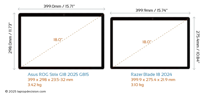 USBBoth ROG Strix G18 2025 G815 and Blade 18 2024 feature 3x USB 3.2 USB-A ports.Both ROG Strix G18 2025 G815 and Blade 18 2024 feature 2x USB 4.0 USB Type-C ports.