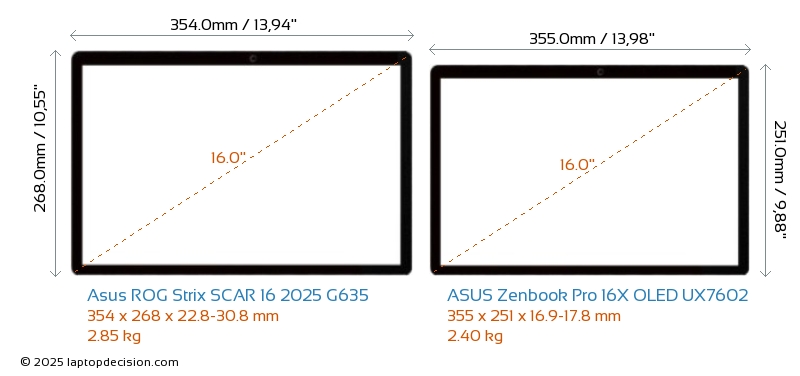 HDMIBoth ROG Strix SCAR 16 2025 G635 and Zenbook Pro 16X OLED UX7602 feature an HDMI port (1x HDMI 2.1) for connecting to external monitors.
