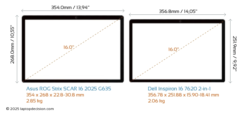 HDMIBoth ROG Strix SCAR 16 2025 G635 and Inspiron 16 7620 2-in-1 feature an HDMI port. ROG Strix SCAR 16 2025 G635 offers 1x HDMI 2.1, while Inspiron 16 7620 2-in-1 offers 1x HDMI 1.4.