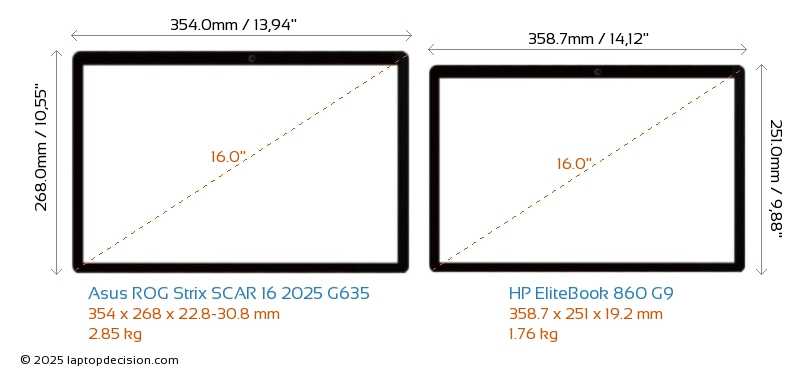HDMIBoth ROG Strix SCAR 16 2025 G635 and EliteBook 860 G9 feature an HDMI port. ROG Strix SCAR 16 2025 G635 offers 1x HDMI 2.1, while EliteBook 860 G9 offers 1x HDMI 2.0.