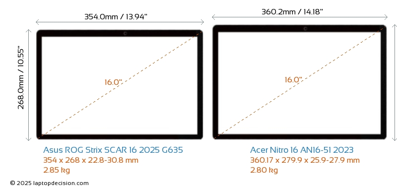 USBBoth ROG Strix SCAR 16 2025 G635 and Nitro 16 AN16-51 2023 feature 3x USB 3.2 USB-A ports.Both ROG Strix SCAR 16 2025 G635 and Nitro 16 AN16-51 2023 have USB Type-C ports. ROG Strix SCAR 16 2025 G635 has 2x USB 4.0 USB Type-C ports, while Nitro 16 AN16-51 2023 has 2x USB 3.2 USB Type-C ports.
