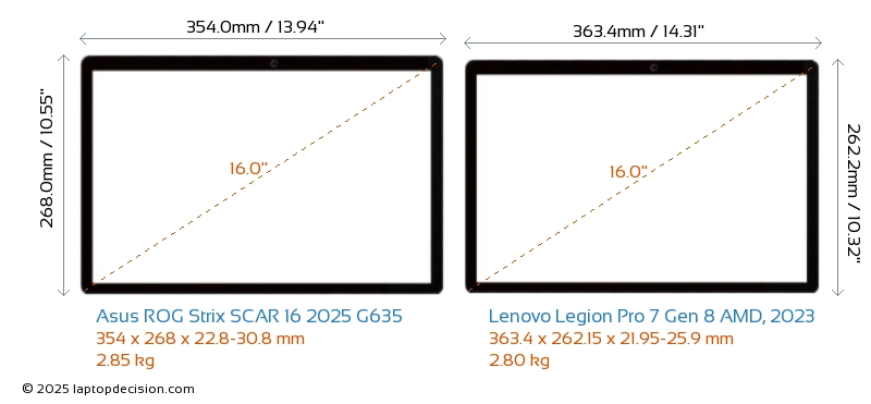 Wifi ROG Strix SCAR 16 2025 G635 features a more advanced Wi-Fi standard v7, providing faster and more reliable wireless connections compared to Legion Pro 7 Gen 8 AMD, 2023 (v6E).