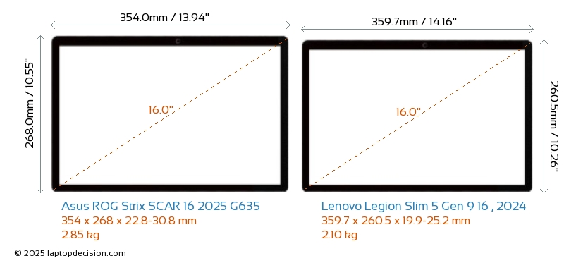 Audio JackBoth ROG Strix SCAR 16 2025 G635 and Legion Slim 5 Gen 9 16 , 2024 are equipped with a 3.5mm Audio Jack, providing seamless connection to headphones and speakers.