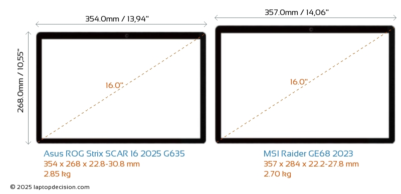 SD Card Reader Raider GE68 2023 is equipped with an SD Card Reader for easy access to memory cards. ROG Strix SCAR 16 2025 G635 does not have an SD Card Reader.