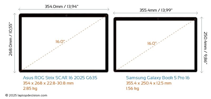 SD Card Reader Galaxy Book 5 Pro 16 is equipped with an SD Card Reader for easy access to memory cards. ROG Strix SCAR 16 2025 G635 does not have an SD Card Reader.
