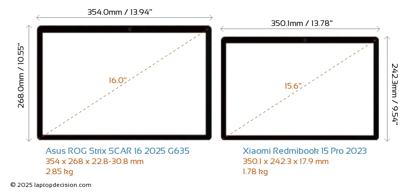 SD Card Reader Redmibook 15 Pro 2023 is equipped with an SD Card Reader for easy access to memory cards. ROG Strix SCAR 16 2025 G635 does not have an SD Card Reader.