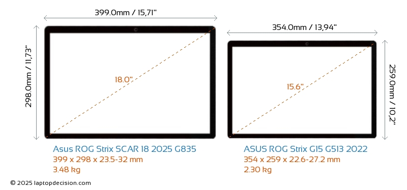 HDMIBoth ROG Strix SCAR 18 2025 G835 and ROG Strix G15 G513 2022 feature an HDMI port. ROG Strix SCAR 18 2025 G835 offers 1x HDMI 2.1, while ROG Strix G15 G513 2022 offers 1x HDMI 2.0.