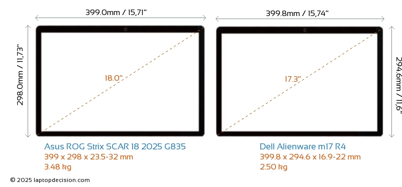 USBBoth ROG Strix SCAR 18 2025 G835 and Alienware m17 R4 feature 3x USB 3.2 USB-A ports.Both ROG Strix SCAR 18 2025 G835 and Alienware m17 R4 have USB Type-C ports. ROG Strix SCAR 18 2025 G835 has 2x USB 4.0 USB Type-C ports, while Alienware m17 R4 has 1x USB 3.2 USB Type-C ports.