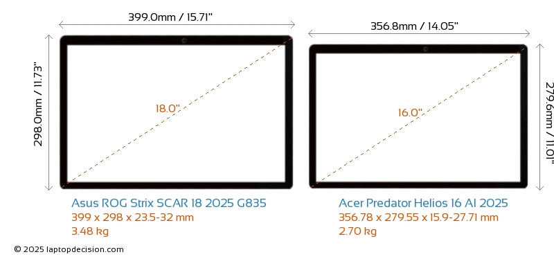 USBBoth ROG Strix SCAR 18 2025 G835 and Predator Helios 16 AI 2025 feature 3x USB 3.2 USB-A ports.Both ROG Strix SCAR 18 2025 G835 and Predator Helios 16 AI 2025 feature 2x USB 4.0 USB Type-C ports.