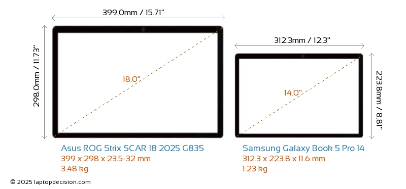 SD Card Reader Galaxy Book 5 Pro 14 is equipped with an SD Card Reader for easy access to memory cards. ROG Strix SCAR 18 2025 G835 does not have an SD Card Reader.