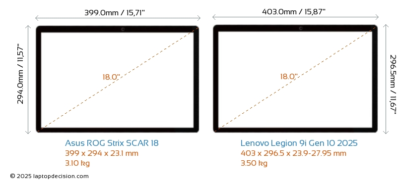 USBBoth ROG Strix SCAR 18 and Legion 9i Gen 10 2025 have USB-A ports. ROG Strix SCAR 18 has 2x USB 3.2 USB-A ports, while Legion 9i Gen 10 2025 has 3x USB 3.2 USB-A ports.Both ROG Strix SCAR 18 and Legion 9i Gen 10 2025 have USB Type-C ports. ROG Strix SCAR 18 has 2x USB 4.0 USB Type-C ports, while Legion 9i Gen 10 2025 has 3x USB 4.0 USB Type-C ports.