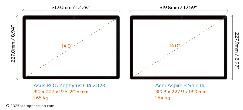 ThunderboltNeither ROG Zephyrus G14 2023 nor Aspire 3 Spin 14 has Thunderbolt port.