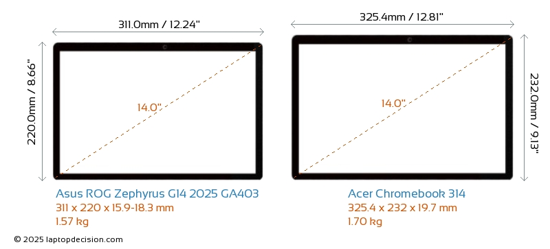 USBBoth ROG Zephyrus G14 2025 GA403 and Chromebook 314 have USB-A ports. ROG Zephyrus G14 2025 GA403 has 2x USB 3.2 USB-A ports, while Chromebook 314 has 2x USB 3.0 USB-A ports.Both ROG Zephyrus G14 2025 GA403 and Chromebook 314 have USB Type-C ports. ROG Zephyrus G14 2025 GA403 has 2x USB 4.0 USB Type-C ports, while Chromebook 314 has 2x USB 3.1 USB Type-C ports.