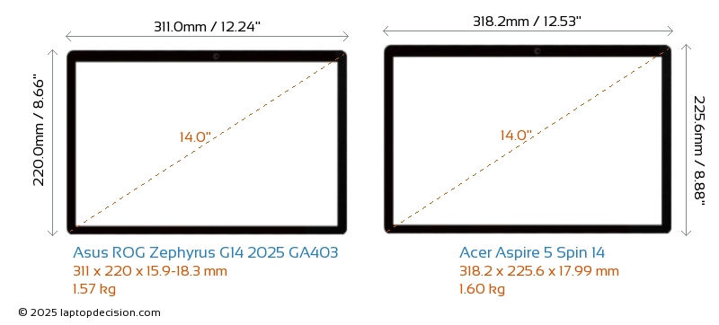 Audio JackBoth ROG Zephyrus G14 2025 GA403 and Aspire 5 Spin 14 are equipped with a 3.5mm Audio Jack, providing seamless connection to headphones and speakers.