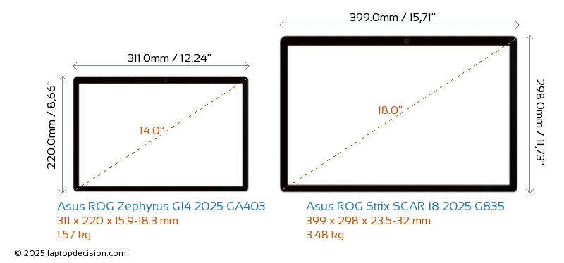SD Card Reader ROG Zephyrus G14 2025 GA403 is equipped with an SD Card Reader for easy access to memory cards. ROG Strix SCAR 18 2025 G835 does not have an SD Card Reader.