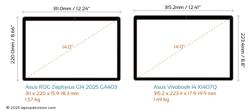 ThunderboltNeither ROG Zephyrus G14 2025 GA403 nor Vivobook 14 X1407Q has Thunderbolt port.