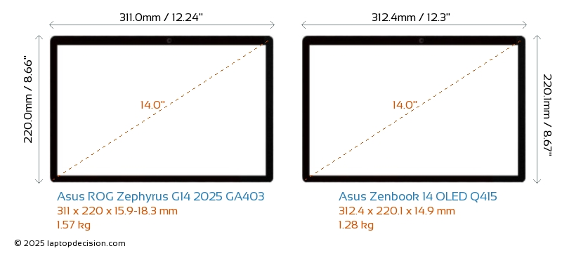 HDMIBoth ROG Zephyrus G14 2025 GA403 and Zenbook 14 OLED Q415 feature an HDMI port (1x HDMI 2.1) for connecting to external monitors.
