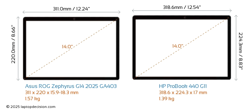 Audio JackBoth ROG Zephyrus G14 2025 GA403 and ProBook 440 G11 are equipped with a 3.5mm Audio Jack, providing seamless connection to headphones and speakers.