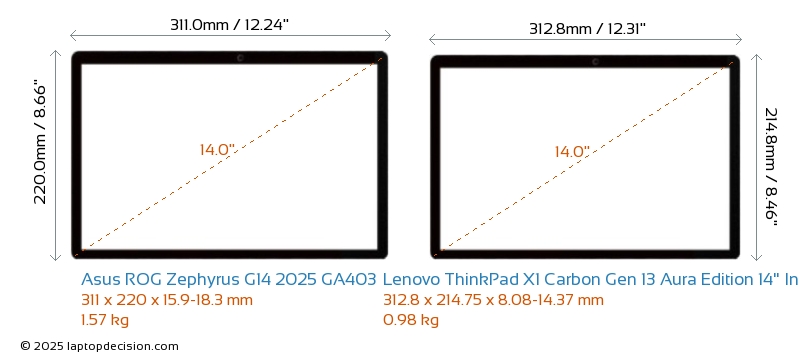 Thunderbolt ThinkPad X1 Carbon Gen 13 Aura Edition 14" Intel is equipped with Thunderbolt 4 port. ROG Zephyrus G14 2025 GA403 does not have Thunderbolt port.