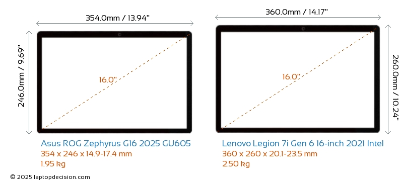HDMIBoth ROG Zephyrus G16 2025 GU605 and Legion 7i Gen 6 16-inch 2021 Intel feature an HDMI port (1x HDMI 2.1) for connecting to external monitors.