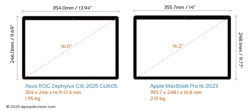 HDMIBoth ROG Zephyrus G16 2025 GU605 and MacBook Pro 16 2023 feature an HDMI port (1x HDMI 2.1) for connecting to external monitors.