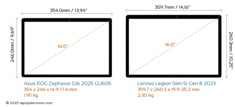 HDMIBoth ROG Zephyrus G16 2025 GU605 and Legion Slim 5i Gen 8 2023 feature an HDMI port (1x HDMI 2.1) for connecting to external monitors.