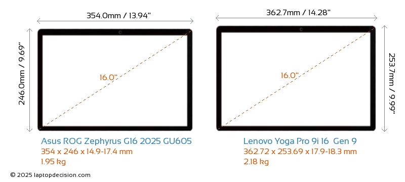 HDMIBoth ROG Zephyrus G16 2025 GU605 and Yoga Pro 9i 16 Gen 9 feature an HDMI port (1x HDMI 2.1) for connecting to external monitors.
