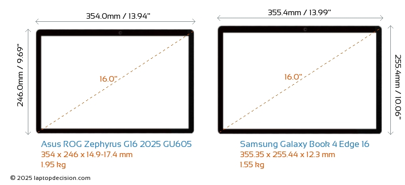 HDMIBoth ROG Zephyrus G16 2025 GU605 and Galaxy Book 4 Edge 16 feature an HDMI port (1x HDMI 2.1) for connecting to external monitors.