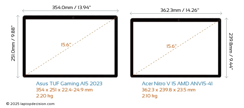 USBBoth TUF Gaming A15 2023 and Nitro V 15 AMD ANV15-41 have USB-A ports. TUF Gaming A15 2023 has 2x USB 3.2 USB-A ports, while Nitro V 15 AMD ANV15-41 has 3x USB 3.2 USB-A ports.Both TUF Gaming A15 2023 and Nitro V 15 AMD ANV15-41 have USB Type-C ports. TUF Gaming A15 2023 has 2x USB 4.0 USB Type-C ports, while Nitro V 15 AMD ANV15-41 has 1x USB 3.2 USB Type-C ports.