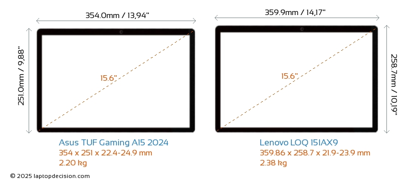 ThunderboltNeither TUF Gaming A15 2024 nor LOQ 15IAX9 has Thunderbolt port.