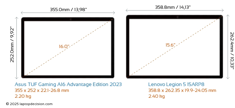 ThunderboltNeither TUF Gaming A16 Advantage Edition 2023 nor Legion 5 15ARP8 has Thunderbolt port.